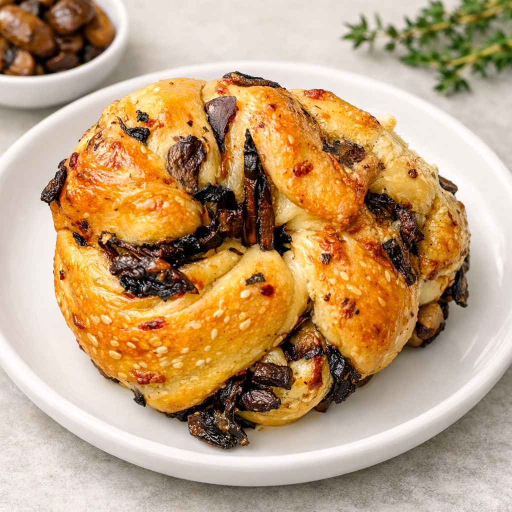 Delicious savory mushroom babka with parmesan, cream, and truffle oil